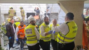 Les bénévoles de Zek travaillent en cas d’effondrement d’un échafaudage à Ramat Gan